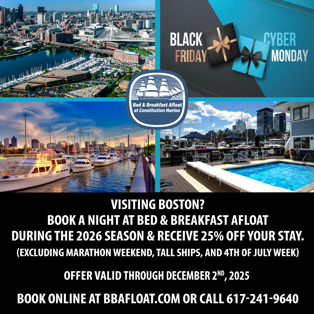 So spend some time with us at Constitution Marina’s Bed & Breakfast Afloat. We are sure that you will enjoy this unique bed & breakfast experience, and that it will be a highlight of your stay in Boston.